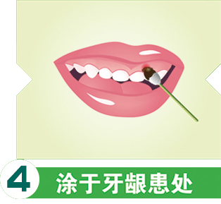 4.然后用小壓片把拌成糊狀的清火膠囊均勻涂抹在患處,保持患處藥物停留處3分鐘,避免藥物流動(dòng)影響效果;5.3分鐘后,用飲用水漱口,清洗干凈即可。